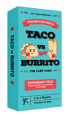 Taco vs Burrito is surprisingly strategic, gripping, wacky-fun and exciting to the very last card. And when it’s all over, no matter who wins… EVERYONE WILL WANT TO PLAY AGAIN! YIPPEE!